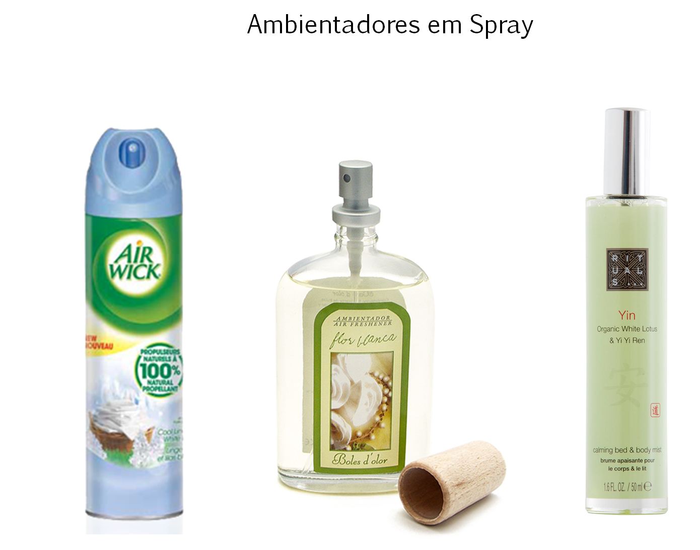 Gosto de ter um mais neutro como este da Air Wick, muito natural e que neutraliza um pouco os odores e outro mais forte quando quero a casa com aroma a perfume. Para isso, uso os da marca Boles d´Olor, o de agora tem cheiro a Flor Branca mas são todos maravilhosos, o problema é escolher!